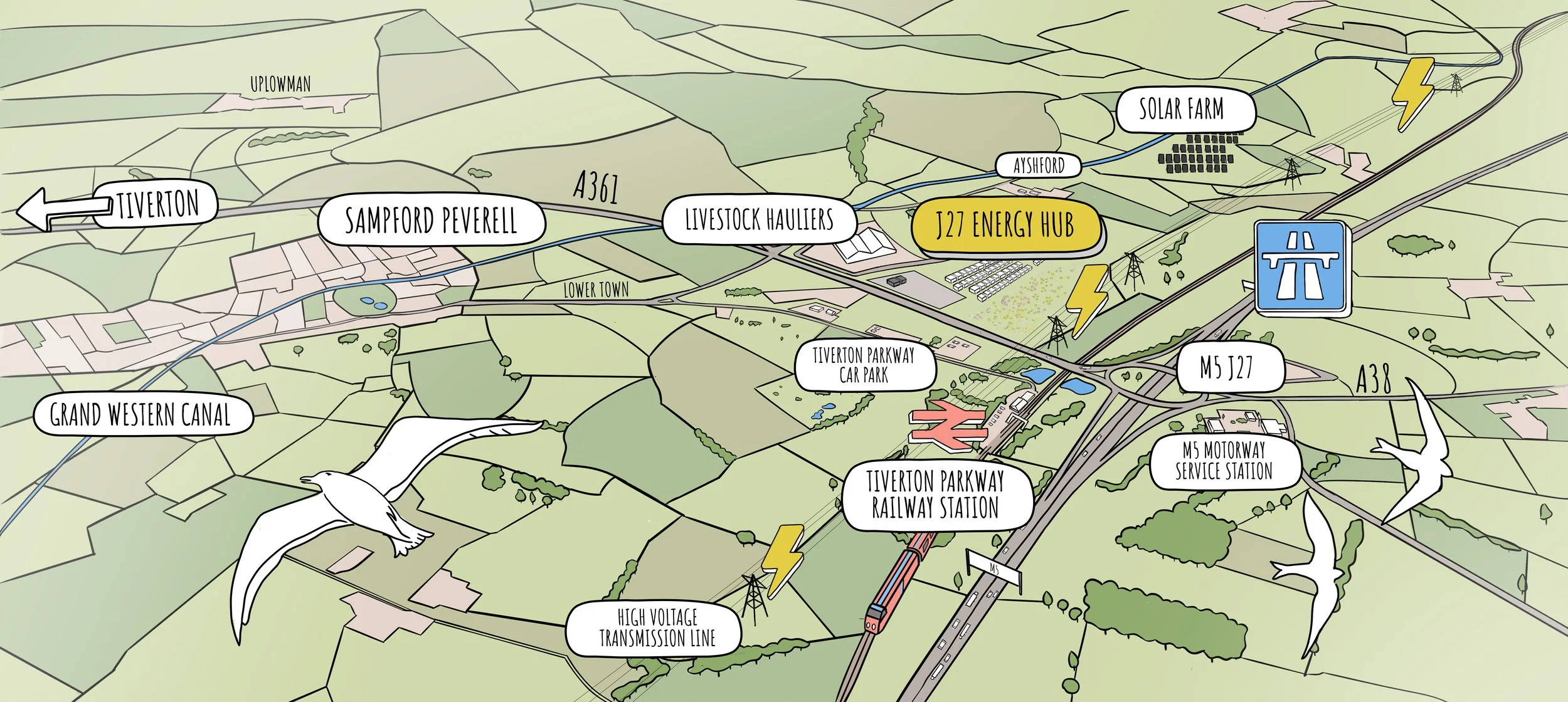 The Junction 27 Energy Hub proposals have now been submitted to Mid Devon District Council, and are currently awaiting validation by the Council. We will share details on how to comment on the planning application here, once the application has been validated.